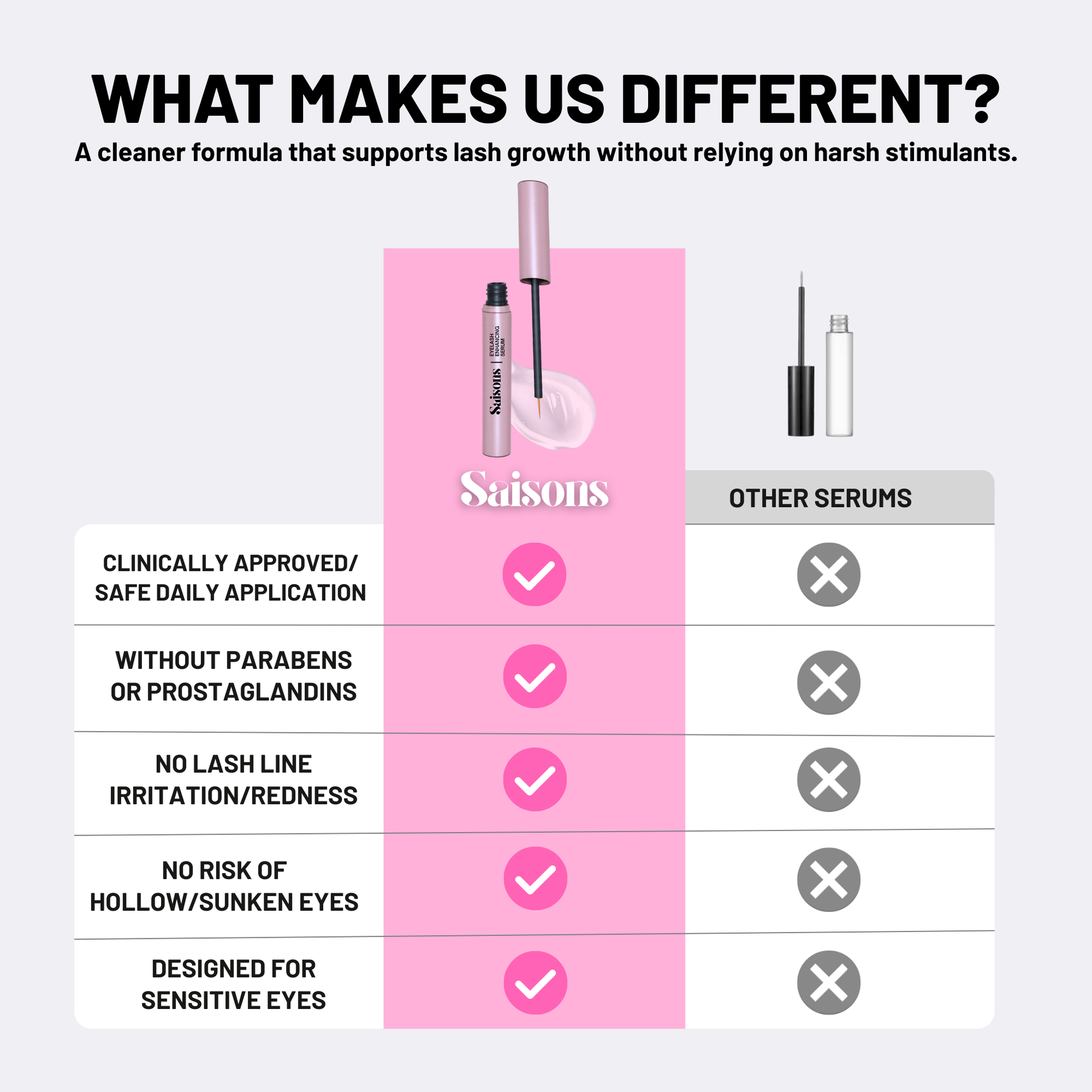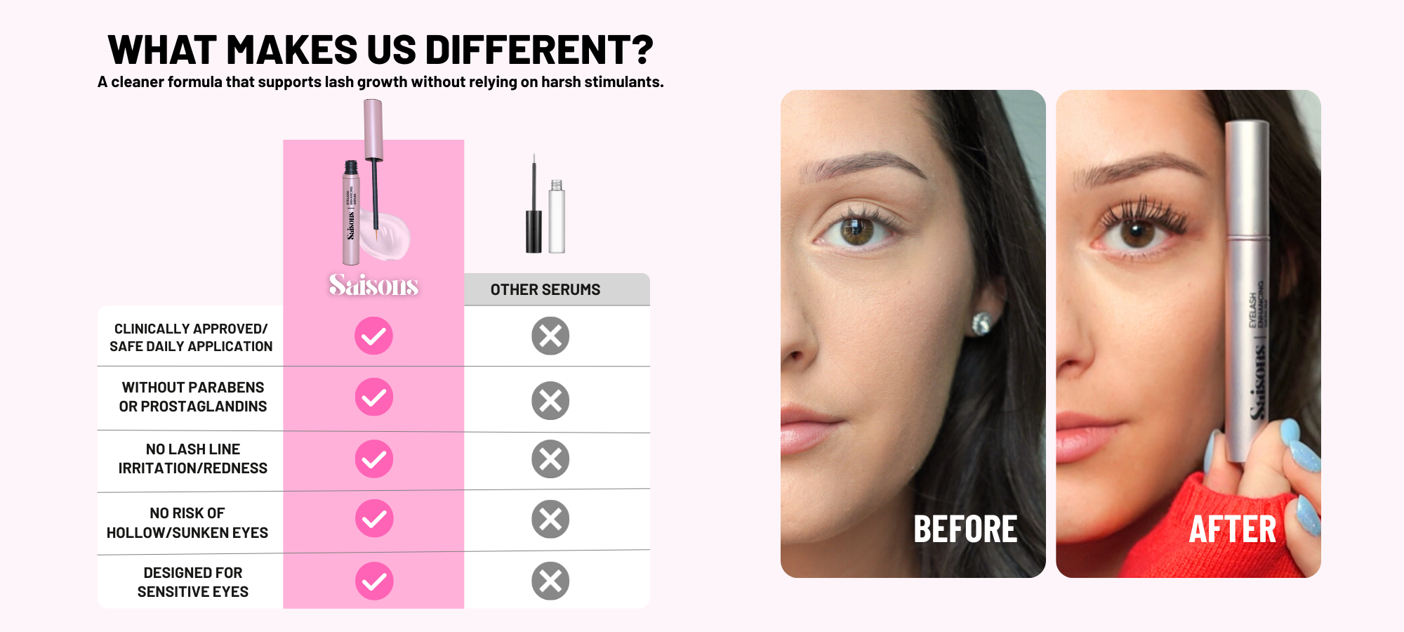 Our prostaglandin-free, paraben-free, and cruelty-free formula is safe for daily use - no redness, no dark circles, just naturally beautiful lashes that look and feel healthier every day.